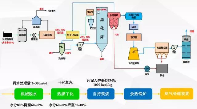本方案直接燃用壓濾后熱值高于800kcal/kg市政污泥(含水率低于60%),無(wú)需任何輔助燃料伴燒可實(shí)現(xiàn)自持焚燒。