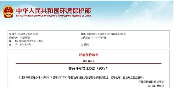 1月17日,環(huán)保部印發(fā)了《排污許可管理辦法(試行)》,標(biāo)志著我國排污許可制度的第一個部門規(guī)章正式出臺。