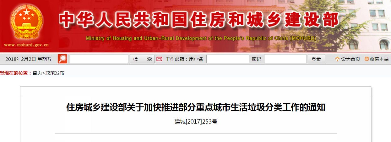 中國住房和城鄉(xiāng)建設(shè)部1月8日發(fā)布的消息稱,3月底前,北京、天津、上海等46個重點城市要出臺生活垃圾分類管理實施方案或行動計劃,明確年度工作目標(biāo),細(xì)化工作內(nèi)容,量化工作任務(wù)。