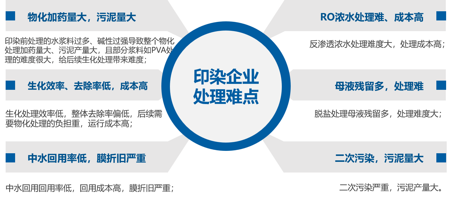 印染廢水普遍具有水量大、水質(zhì)成分復(fù)雜、堿性強(qiáng)、COD濃度高、色度高的特點(diǎn),而且國(guó)家對(duì)印染行業(yè)的排量控制趨嚴(yán)甚至部分省份提出了控鹽排放的要求。
