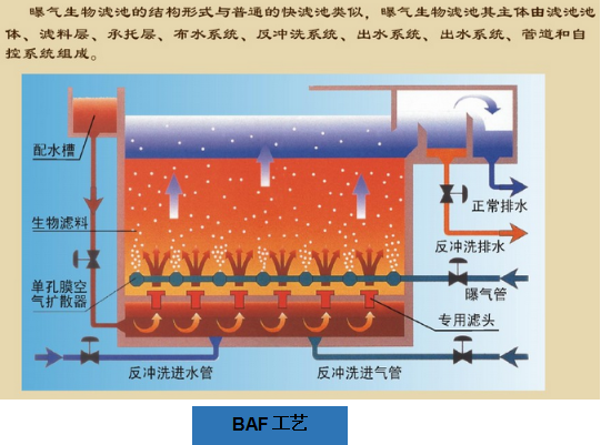 6 、由于濾池好的截污能力,使得 BAF 后面不需再設(shè)二次沉淀池;